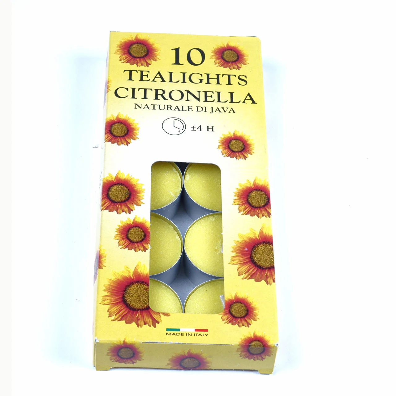 This pack of 10 tea lights have an approximate burn time of 4 hours each and are perfect for helping to keep away those pesky mosquitoes in the evening yet to us is a pleasant lemon fragrance.