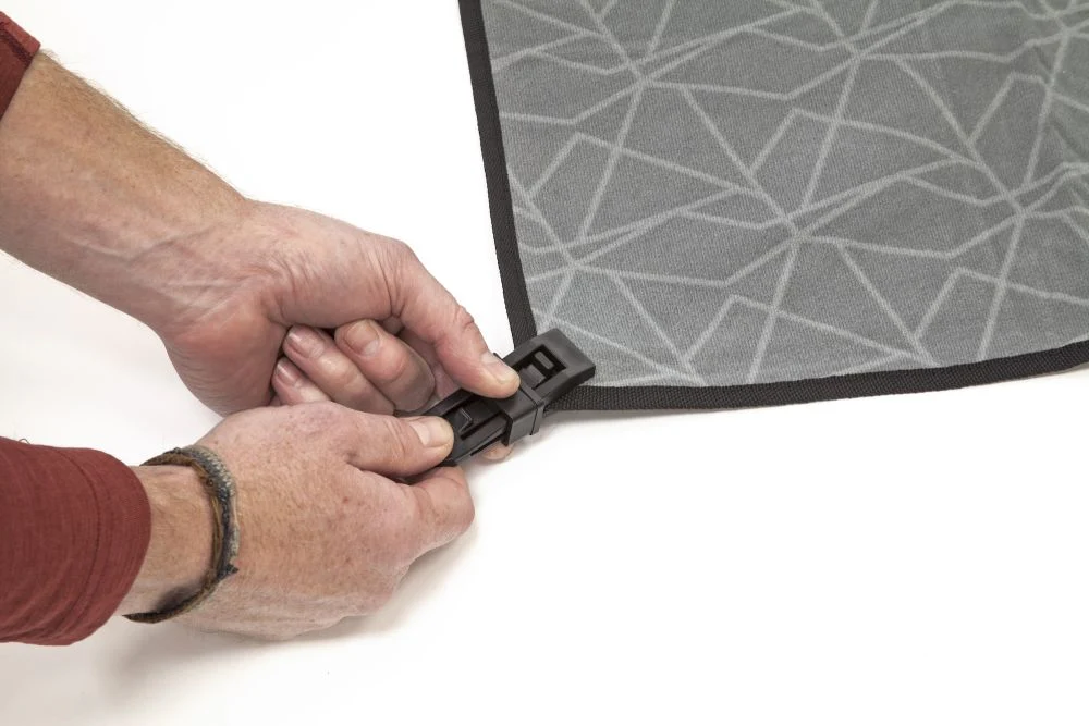 Heavy-duty clamps engineered to grip tarps, tents, banners, and protective coverings with precision. Simply thread rope or cord through the clip end, position your material between the jaws, and slide the locking mechanism to secure.